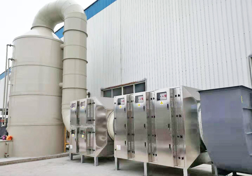 工作原理:利用離子體內(nèi)部產(chǎn)生富含極高化學活性的特點,使用高壓放電裝置在放電時產(chǎn)生高能電子和離子,將空氣中的氧分子進行分離,氧分子吸收能量后產(chǎn)生游離態(tài)的氧離子,惡臭廢氣污染物與游離氧基團發(fā)生反應,轉(zhuǎn)化為CO2和H2O等物質(zhì)。